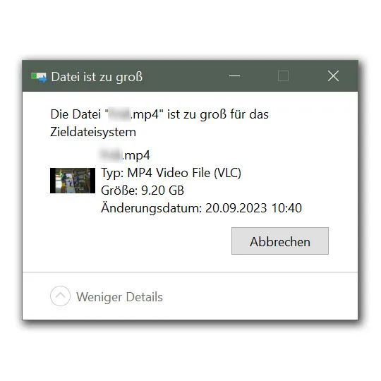 "Die Datei "xyz.mp4" ist zu gross für das Zieldateisystem."